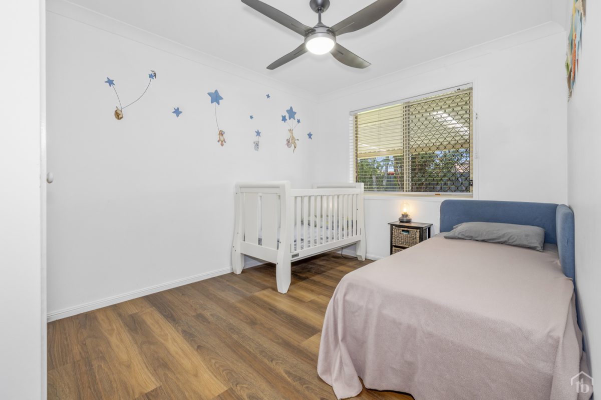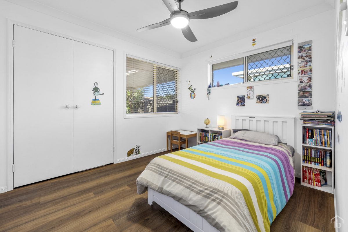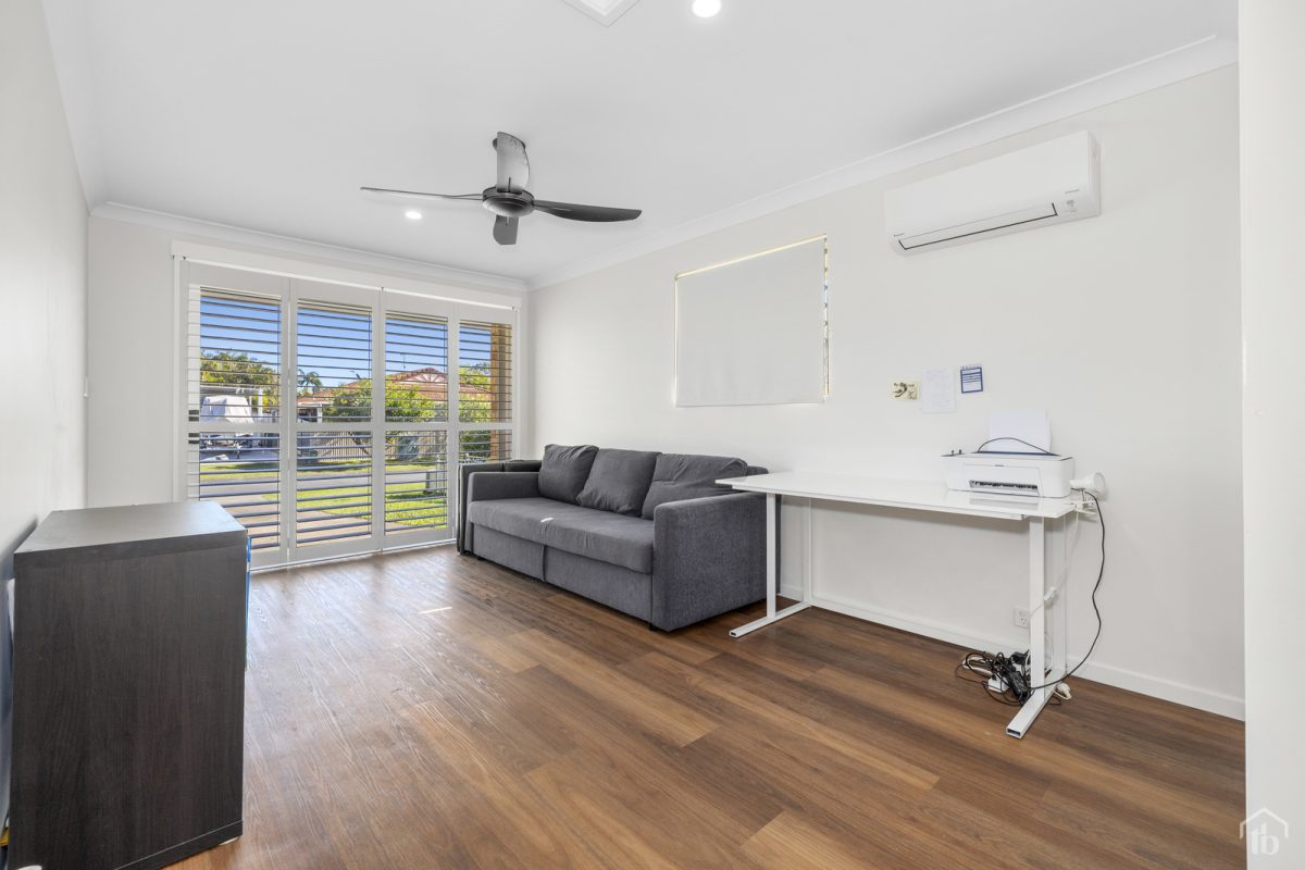 Set on a flat block with 2.3 metres of side access and a generous backyard framed by lush palms, the home boasts a thoughtful floorplan with three bedrooms and two bathrooms – plus a fantastic bonus: a converted garage that now serves as a fully functional multipurpose room. Complete with a built-in robe and its own Daikin split system air conditioner, this space is ideal as a home office, teen retreat or guest room.