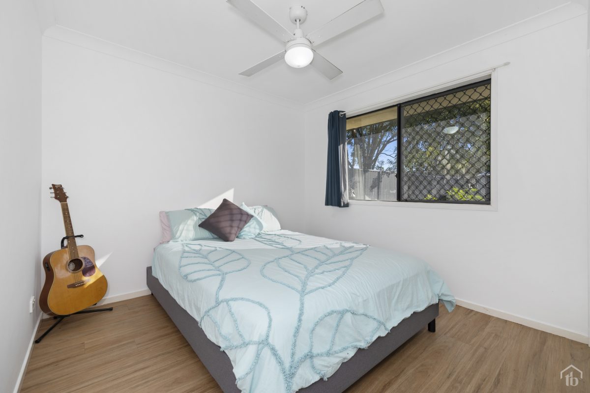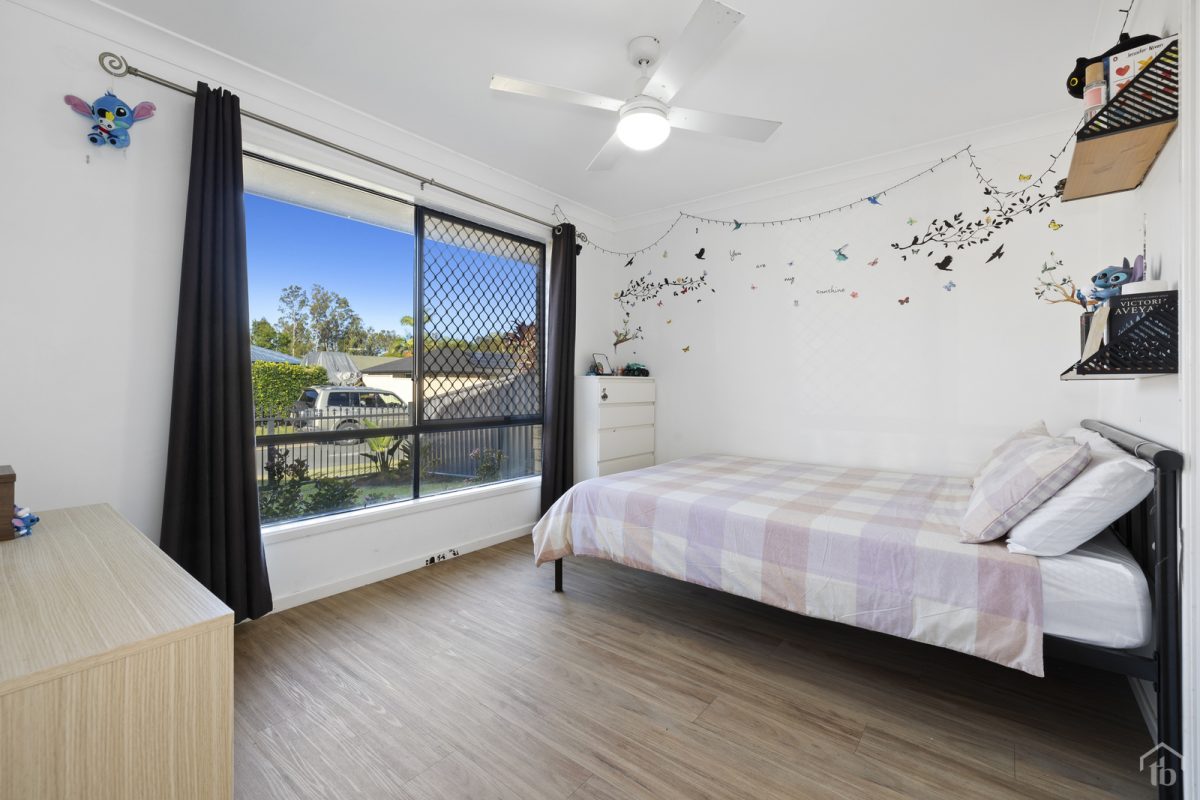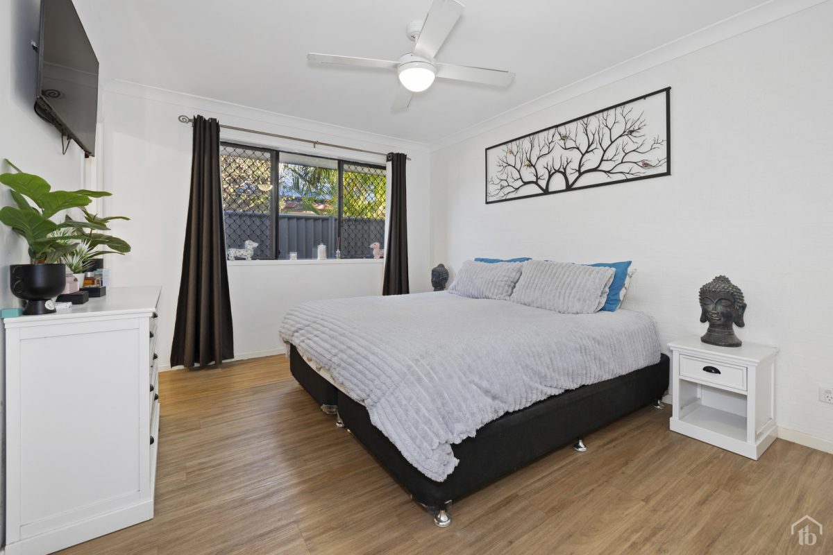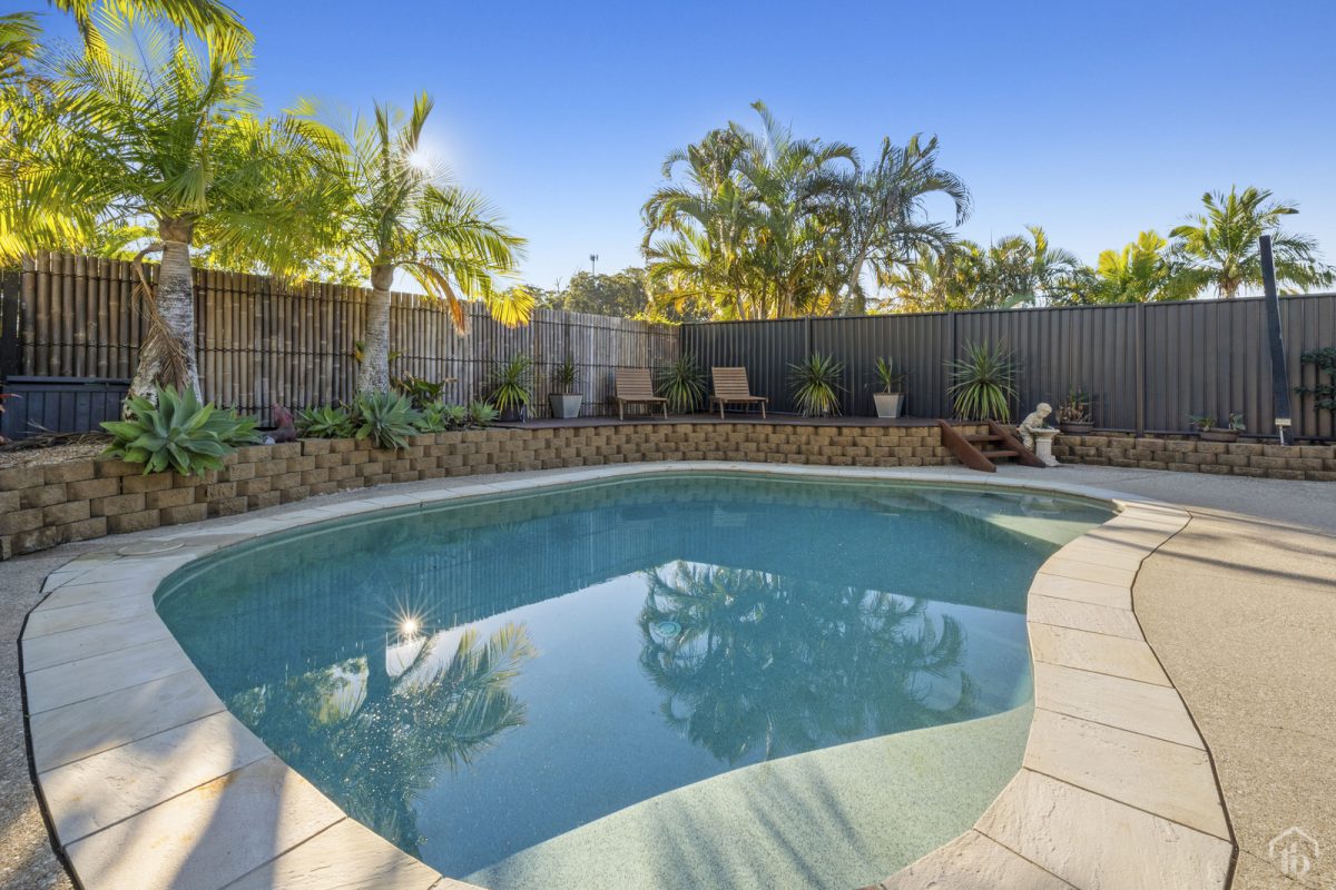 The modern bathroom features quality finishes, and a separate toilet adds everyday convenience. The highlight of the backyard is the inground swimming pool surrounded by tropical landscaping, creating your own private retreat. With tinted windows front and rear, a garden shed, and a 6kW solar system, this home blends lifestyle and practicality in one ideal package.