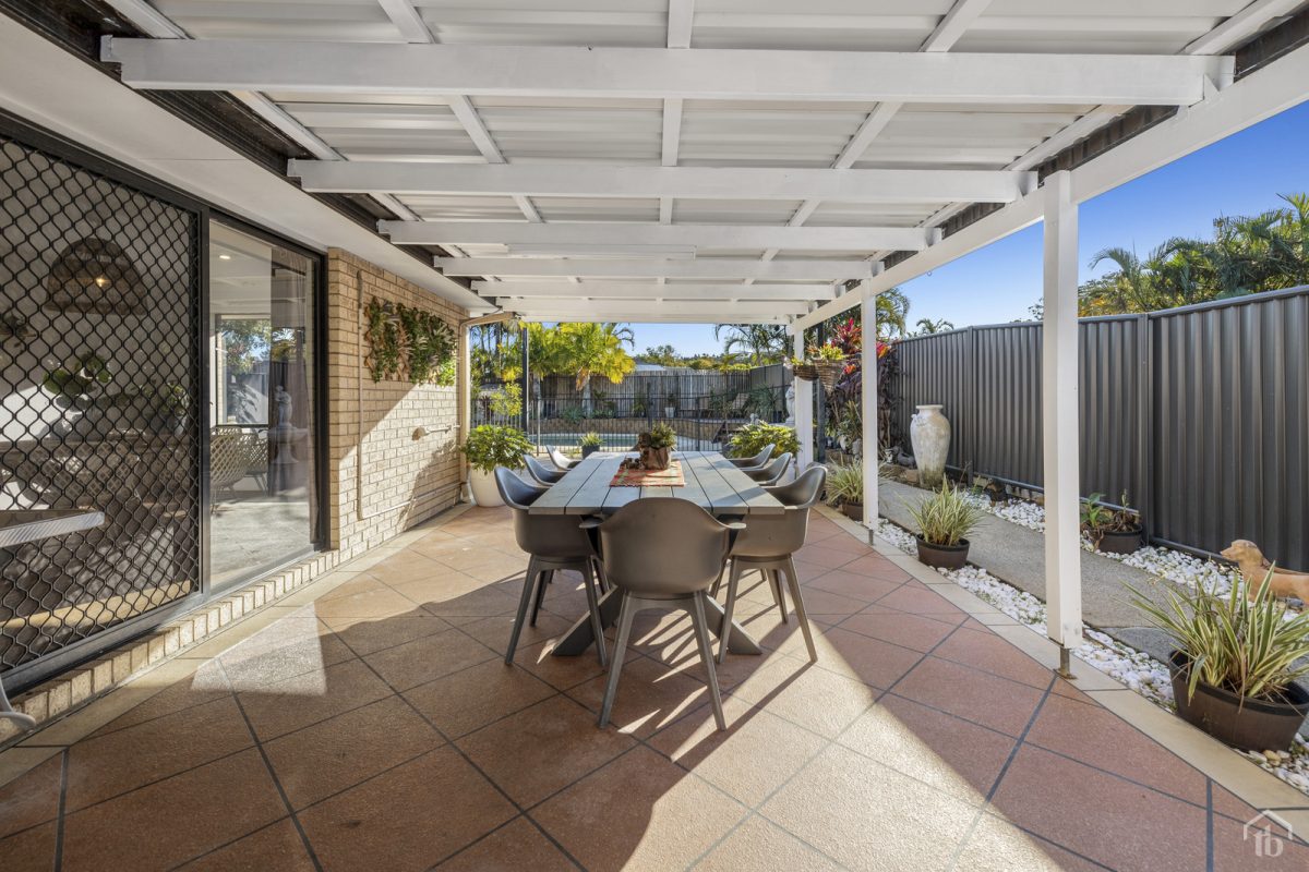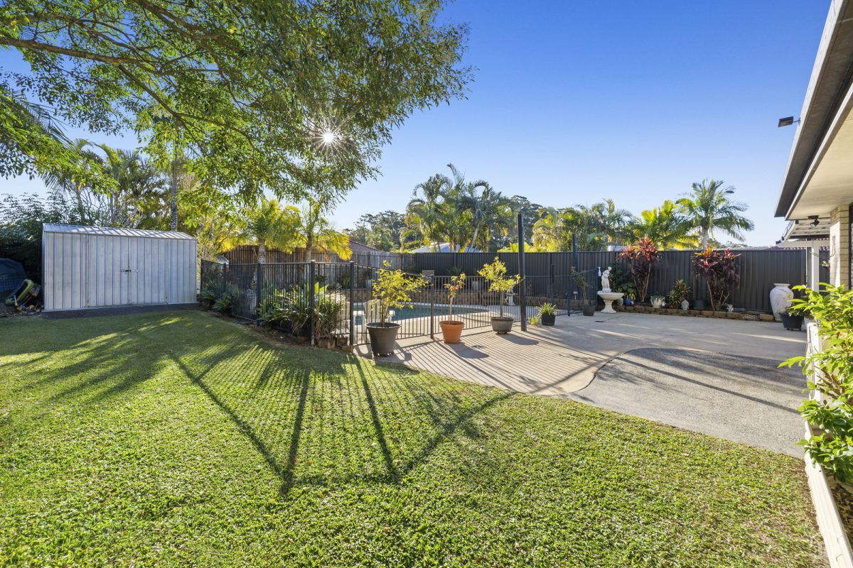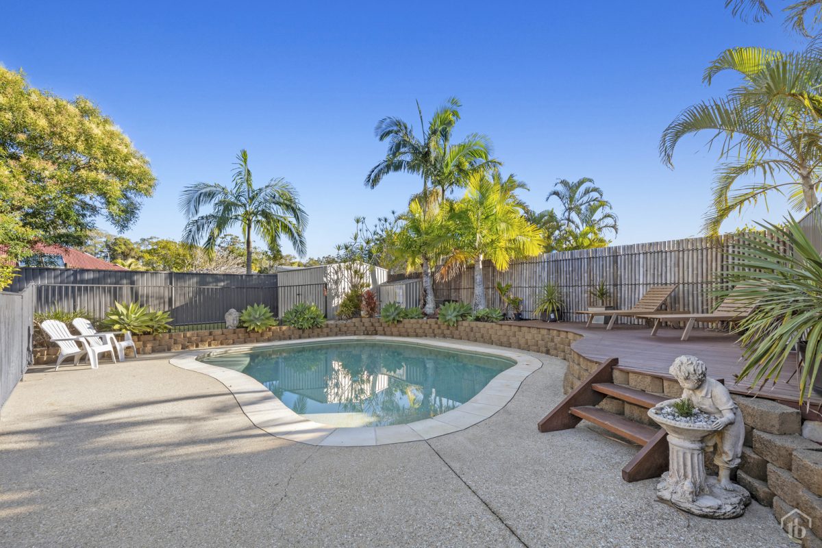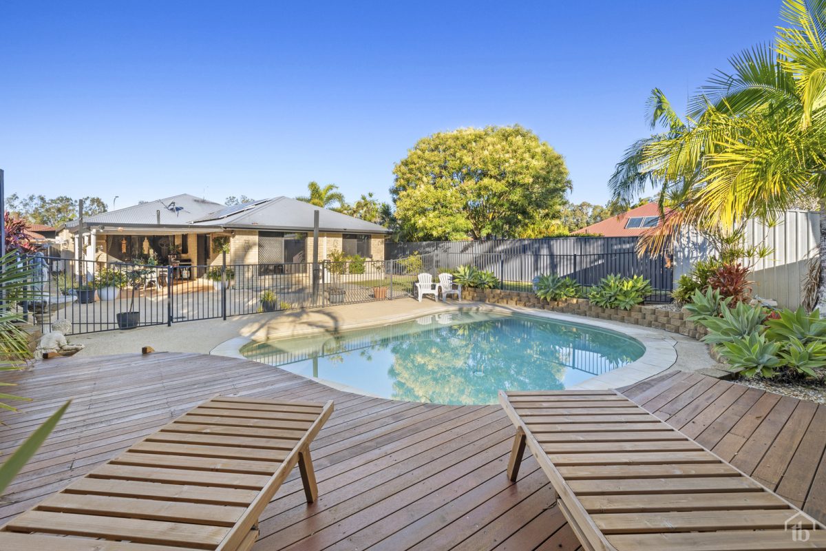 The modern bathroom features quality finishes, and a separate toilet adds everyday convenience. The highlight of the backyard is the inground swimming pool surrounded by tropical landscaping, creating your own private retreat. With tinted windows front and rear, a garden shed, and a 6kW solar system, this home blends lifestyle and practicality in one ideal package.