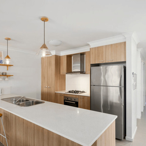 Positioned within a well-kept complex in the heart of Currumbin Waters, this well-presented three-bedroom townhouse delivers a clean, practical layout with excellent separation between living and accommodation. The lower level is centred around an open-plan kitchen, living and dining zone with air-conditioning, flowing directly to a covered outdoor entertaining area and a fully fenced, low-maintenance courtyard – ideal for relaxed everyday living. Upstairs, all three bedrooms are well proportioned, with the master enjoying its own ensuite and private balcony.