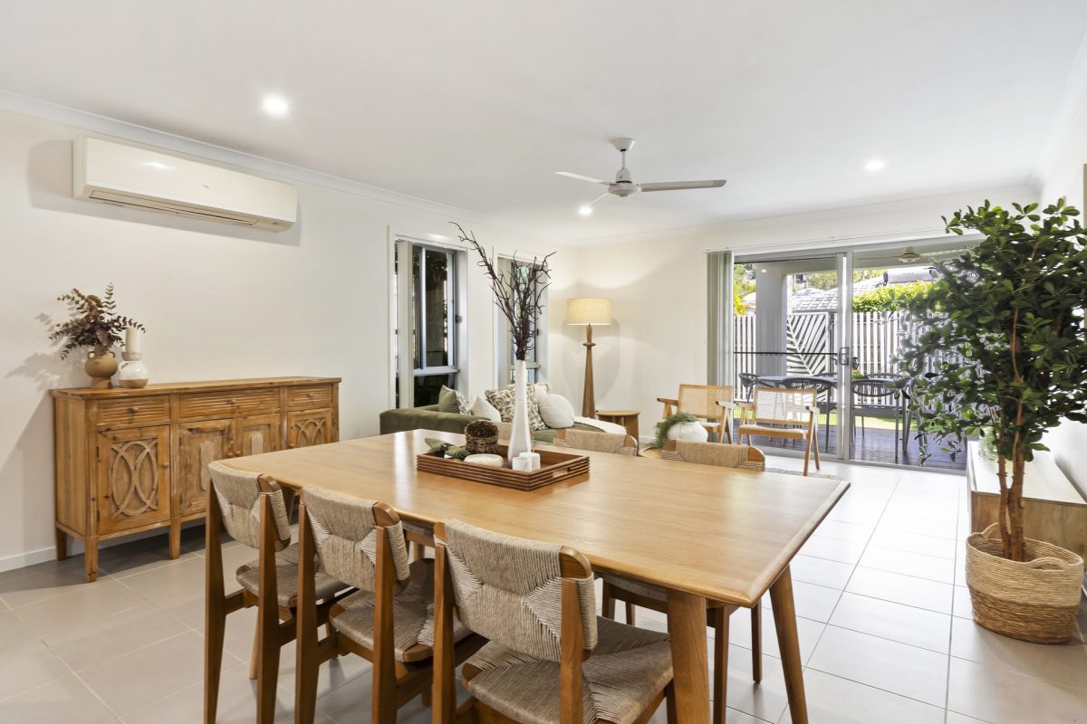 View on Google MapsPositioned within a well-kept complex in the heart of Currumbin Waters, this well-presented three-bedroom townhouse delivers a clean, practical layout with excellent separation between living and accommodation. The lower level is centred around an open-plan kitchen, living and dining zone with air-conditioning, flowing directly to a covered outdoor entertaining area and a fully fenced, low-maintenance courtyard – ideal for relaxed everyday living. Upstairs, all three bedrooms are well proportioned, with the master enjoying its own ensuite and private balcony.