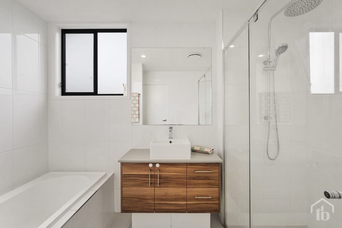 Thoughtfully designed across two levels, the home features a light-filled open plan living and dining area with soaring 2.7m ceilings, complemented by warm timber flooring that enhances the sense of space and style.