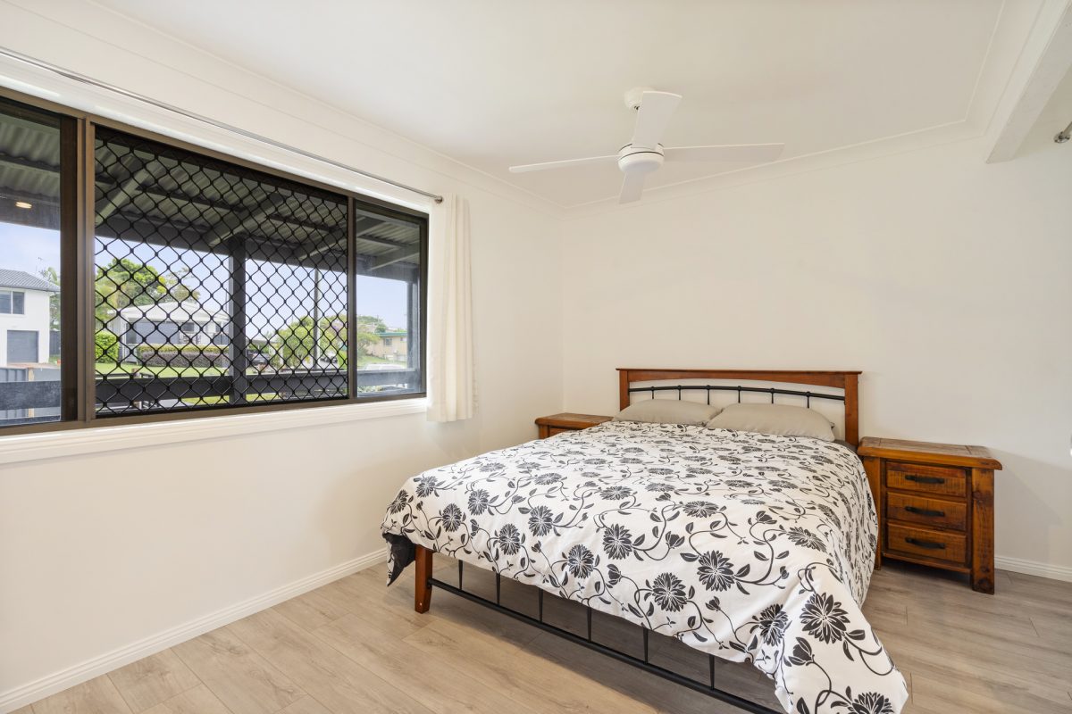 Inside, the light-filled interior features four well-sized bedrooms, all complete with ceiling fans for year-round comfort. The kitchen has been tastefully renovated, showcasing a timber benchtop, quality finishes, and a functional design that connects seamlessly with the living spaces.