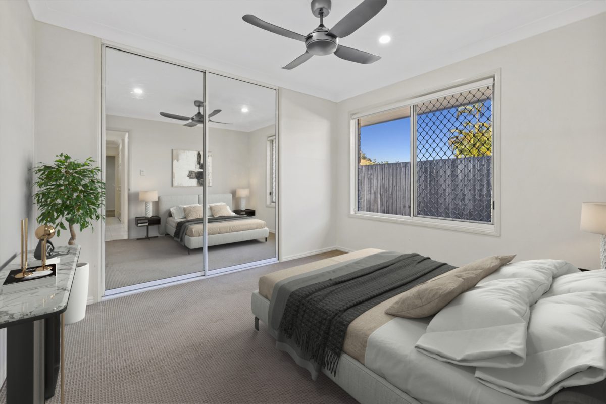 The kitchen is equipped with electric cooking appliances, stainless steel dishwasher, and plenty of bench and storage space. The master suite is set back in the design creating privacy and features a walk-in robe, ensuite, and split system air conditioning for year-round comfort. Two additional bedrooms include mirrored built-in robes and ceiling fans, while the main living area also benefits from a split system air conditioning . Stylish LED lighting and tiled flooring flow throughout the living zones, with plush carpet in the bedrooms for added comfort.