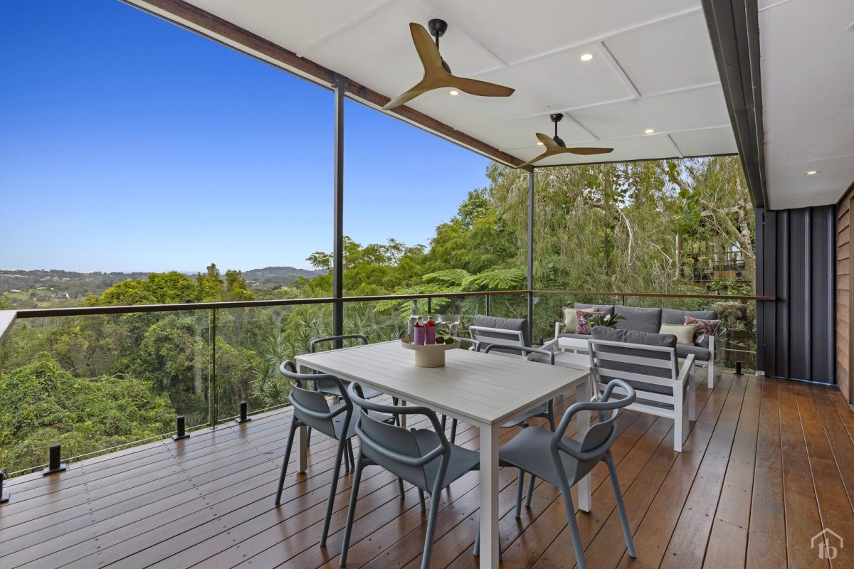 Step outside onto the expansive rear deck, where the magic of this home truly comes to life. The elevated flyover roof with ceiling fans provides comfort year-round, while glass balustrading ensures uninterrupted views over the lush valley and glistening Broadwater. This is the ultimate spot for entertaining, relaxing, or simply soaking in the sunset. An external timber staircase conveniently connects the deck to the lower utility and laundry area, offering easy access and exciting potential to extend – subject to council approval.
