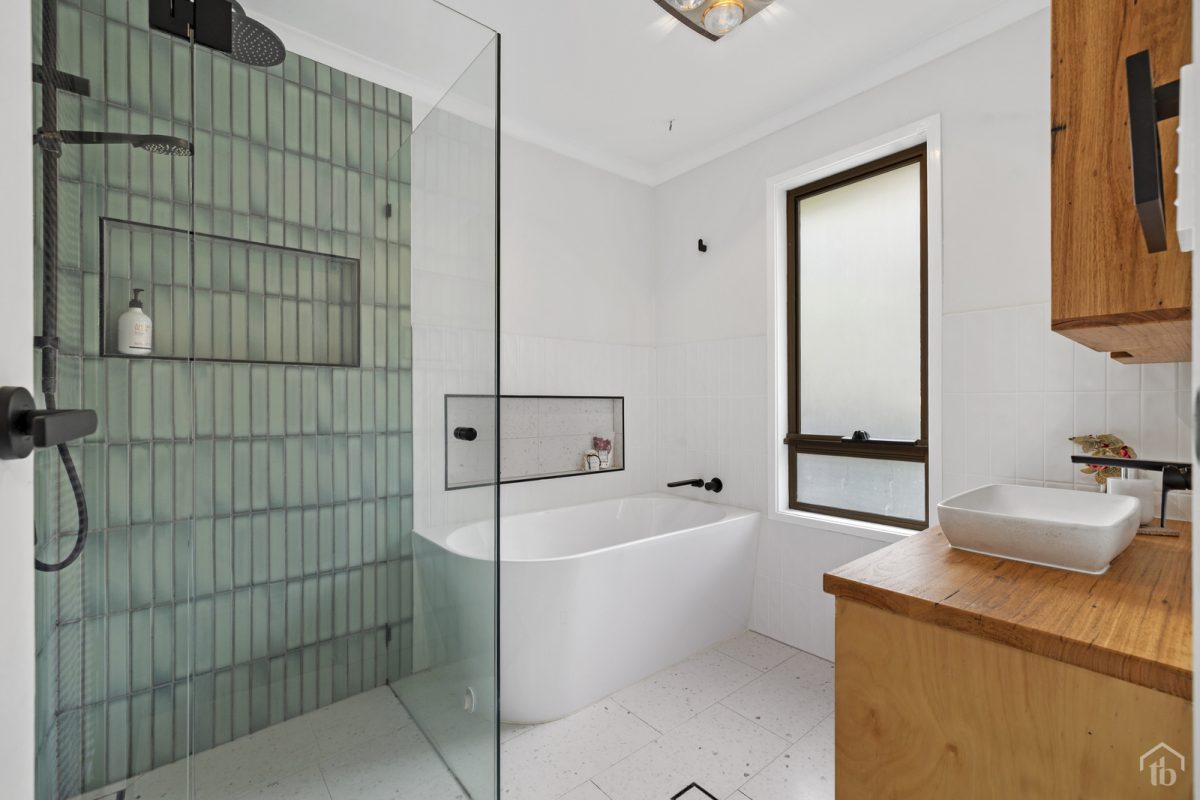 The heart of the home is the fully renovated kitchen. Thoughtfully designed with gas cooking, a dual drawer dishwasher, and concrete benchtops, it also boasts open shelving and stylish finishes that elevate everyday living. Whether you’re entertaining guests at the island bench or preparing meals with a view, this kitchen delivers on both form and function.