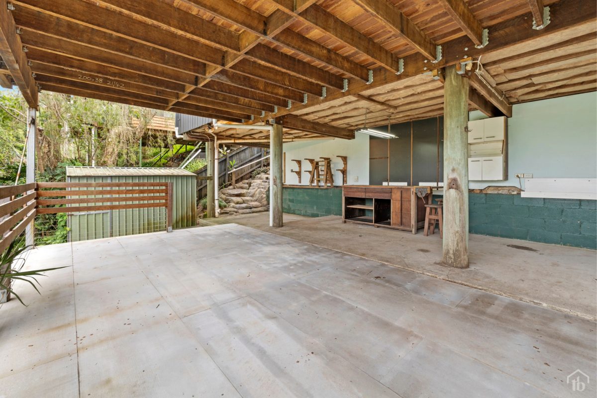 • Undercover external timber staircase connecting the deck to the lower-level utility area