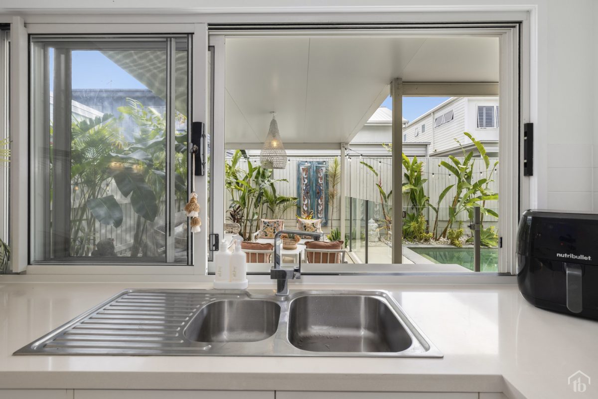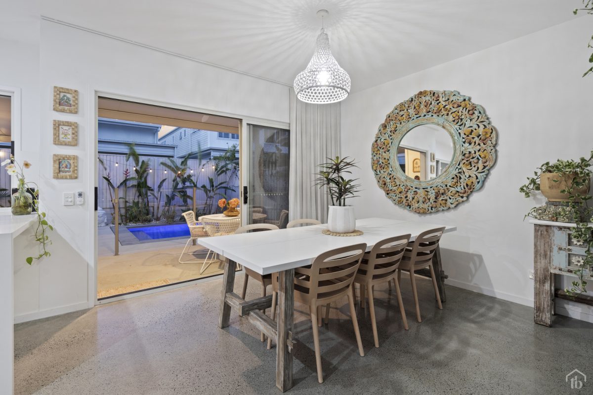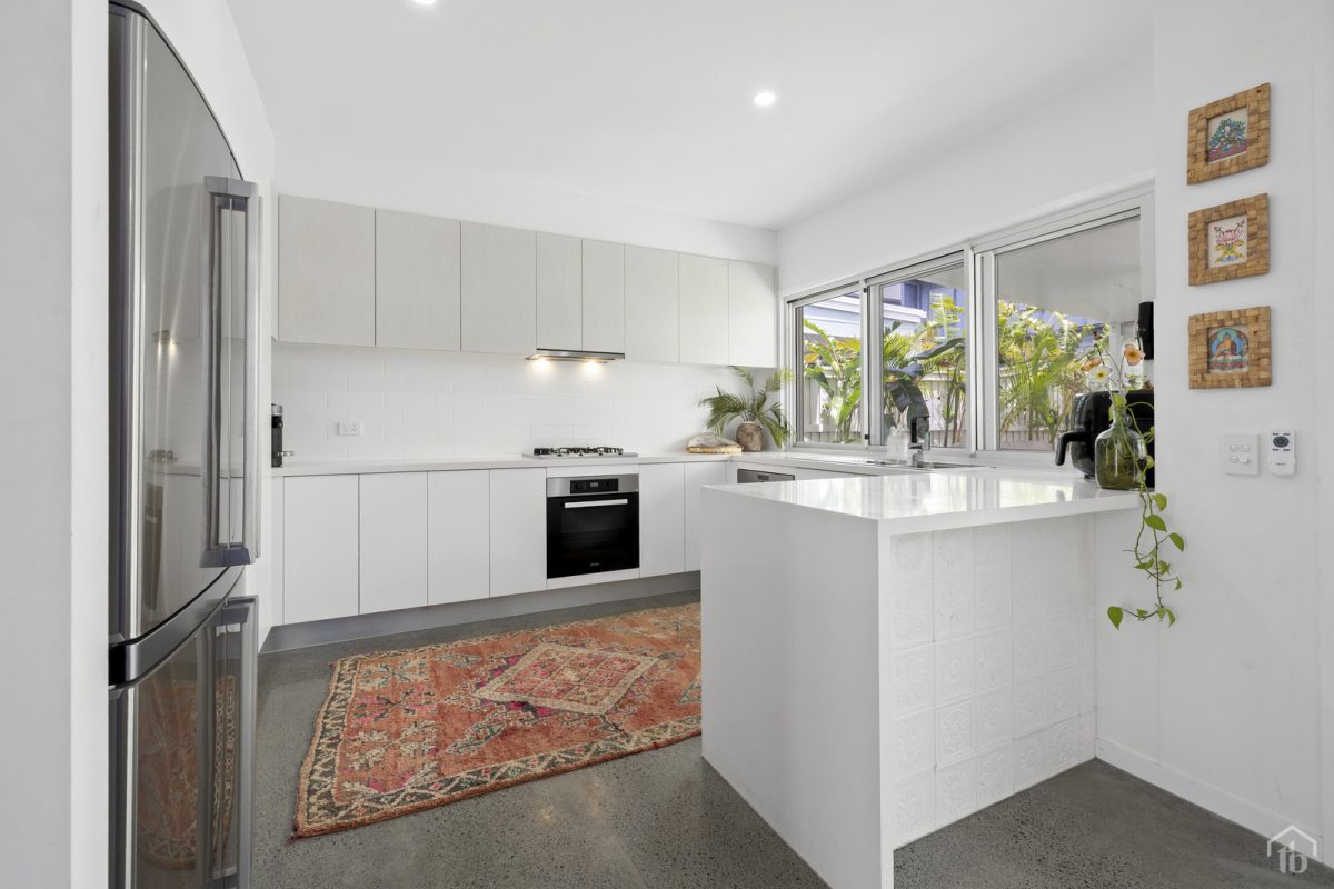 Just moments from the pristine sands of Kingscliff Beach, this home embodies the best of contemporary coastal design. Step inside and be greeted by polished concrete floors that exude understated sophistication, setting the tone for the modern elegance that flows throughout. The heart of the home is the chef’s kitchen – a true showpiece – with a sleek stone benchtop featuring a waterfall edge, Miele gas appliances, and a servery window that invites easy indoor-outdoor entertaining.