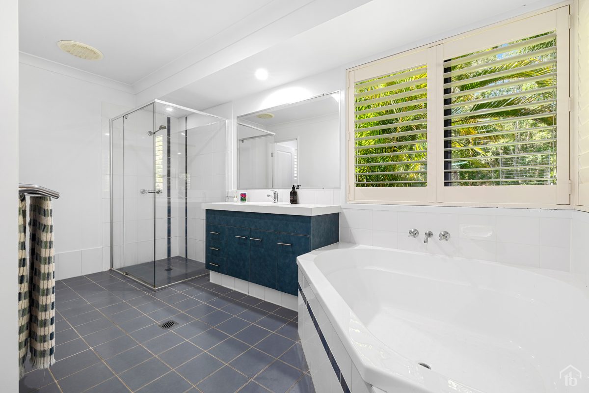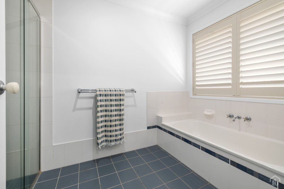 Tucked away at the rear of the home, the master suite offers a serene, private retreat. Its spacious ensuite, complete with a luxurious corner bath, invites relaxation, while the walk-in robe provides ample storage. Framed by views of the lush garden and patio, it becomes the perfect escape, a peaceful sanctuary to unwind and recharge.