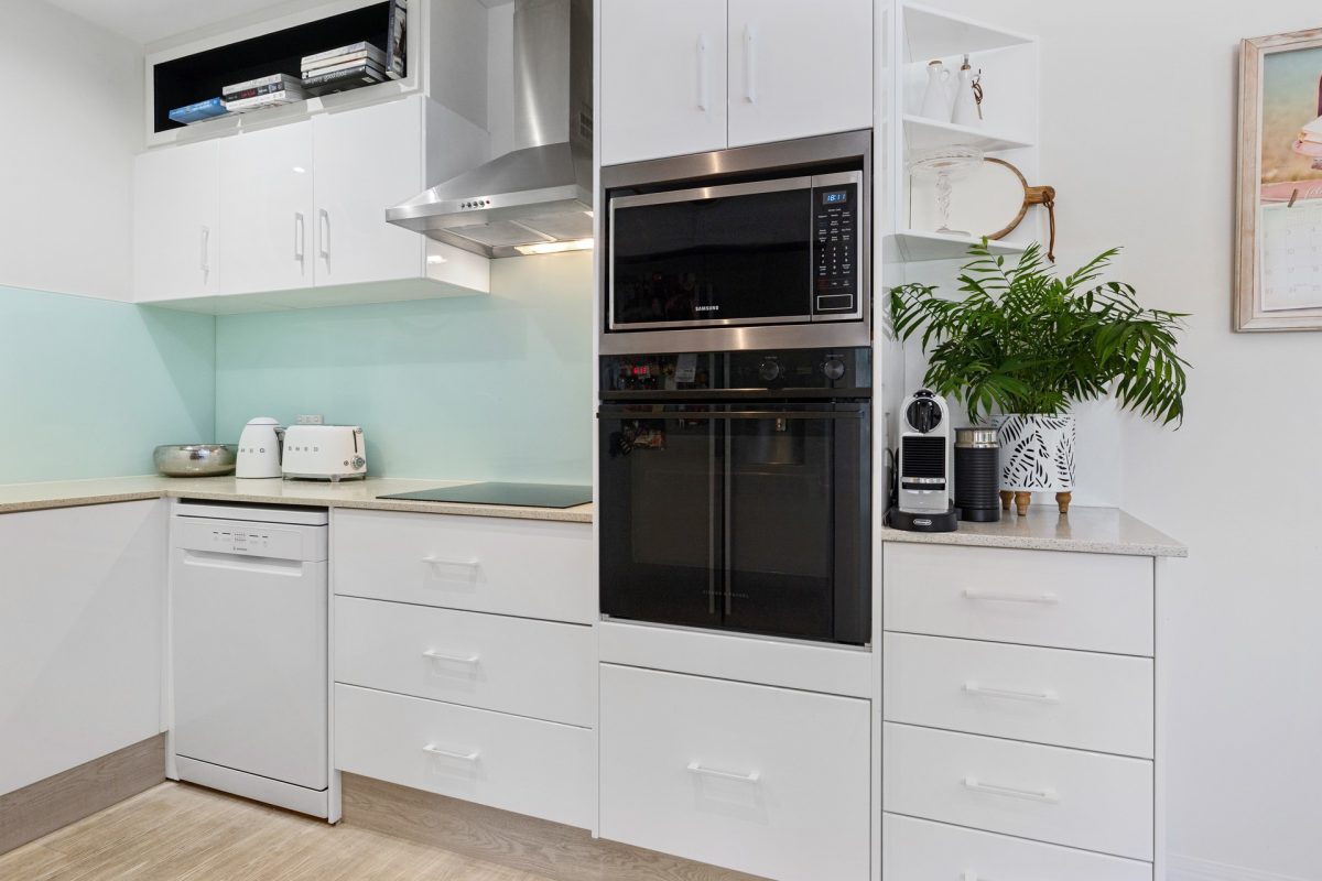 This modern, light-filled home offers an open-plan layout with high ceilings, creating a sense of space and comfort throughout. The north-facing courtyard is ideal for soaking up the morning sun or enjoying peaceful afternoons outdoors. The stylish kitchen is equipped with Caesarstone benchtops, stainless steel appliances, and plenty of storage, making it as practical as it is beautiful.