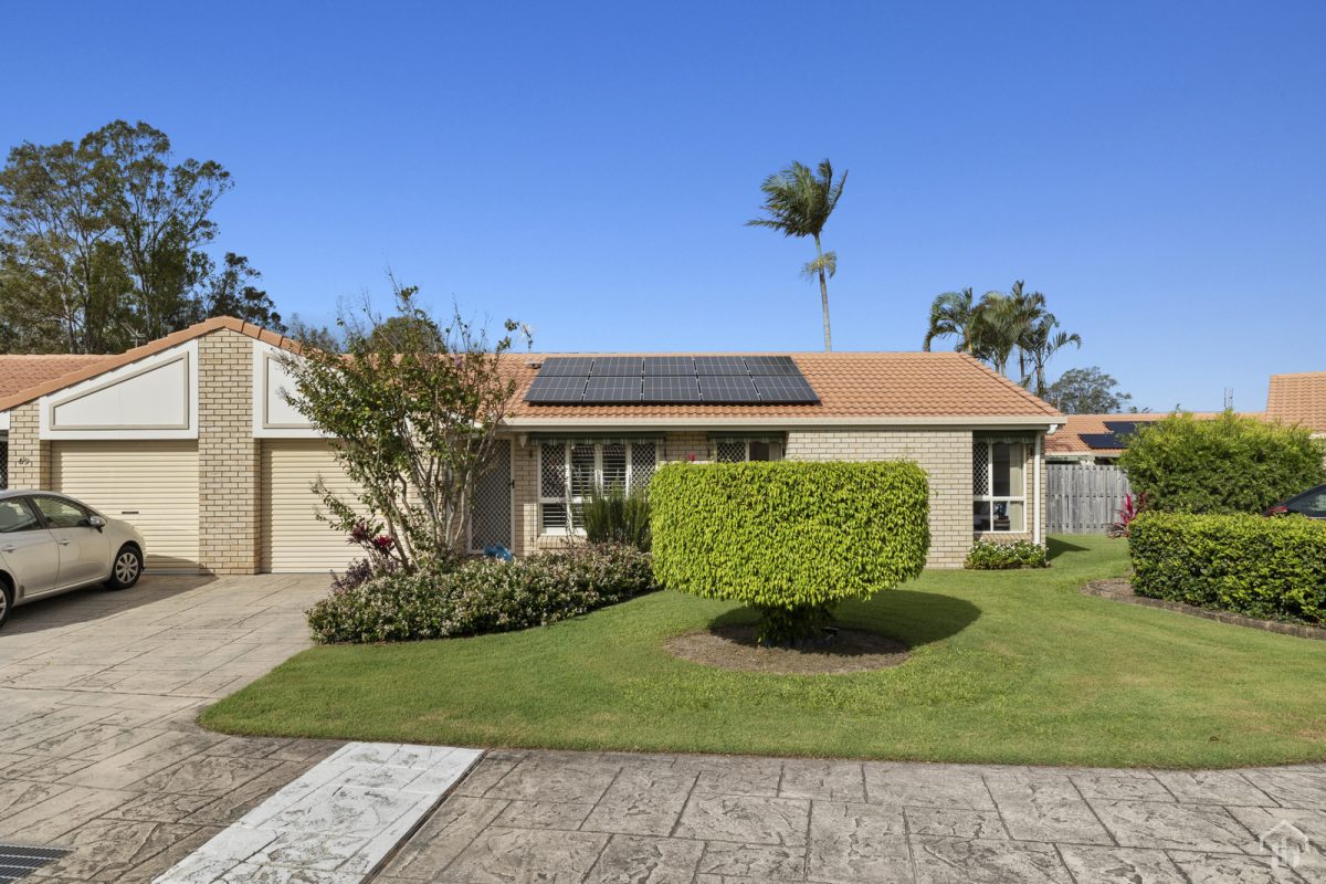 Nestled within a quaint complex, this one-level villa is discreetly positioned away from the street, featuring a welcoming front yard, and side gate access to the fully fenced rear courtyard.