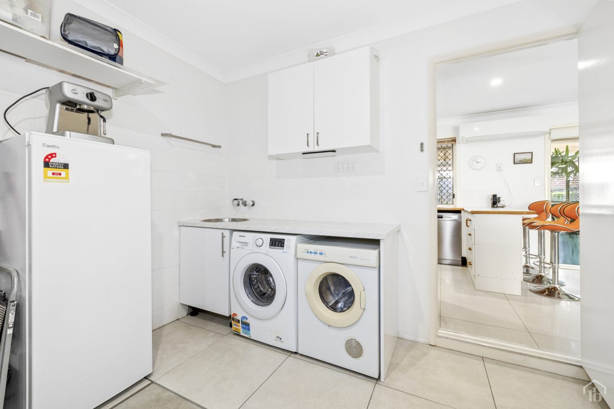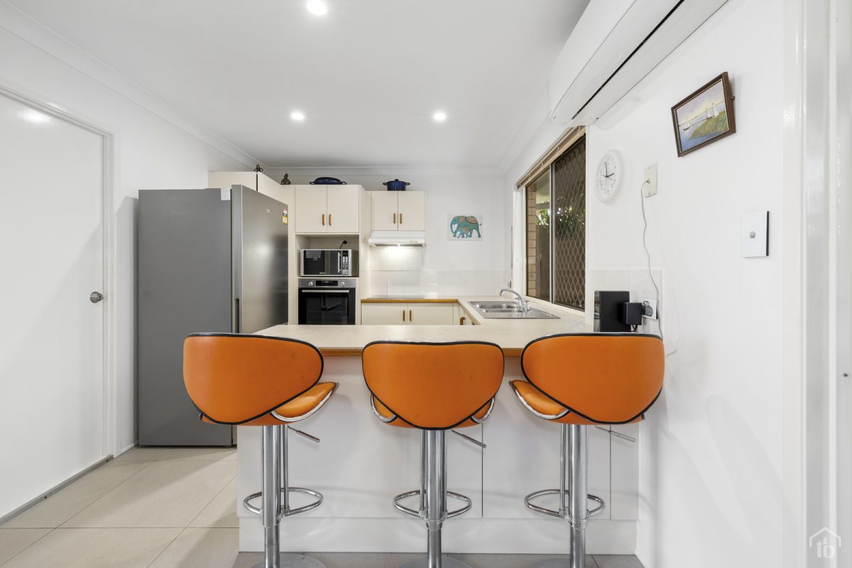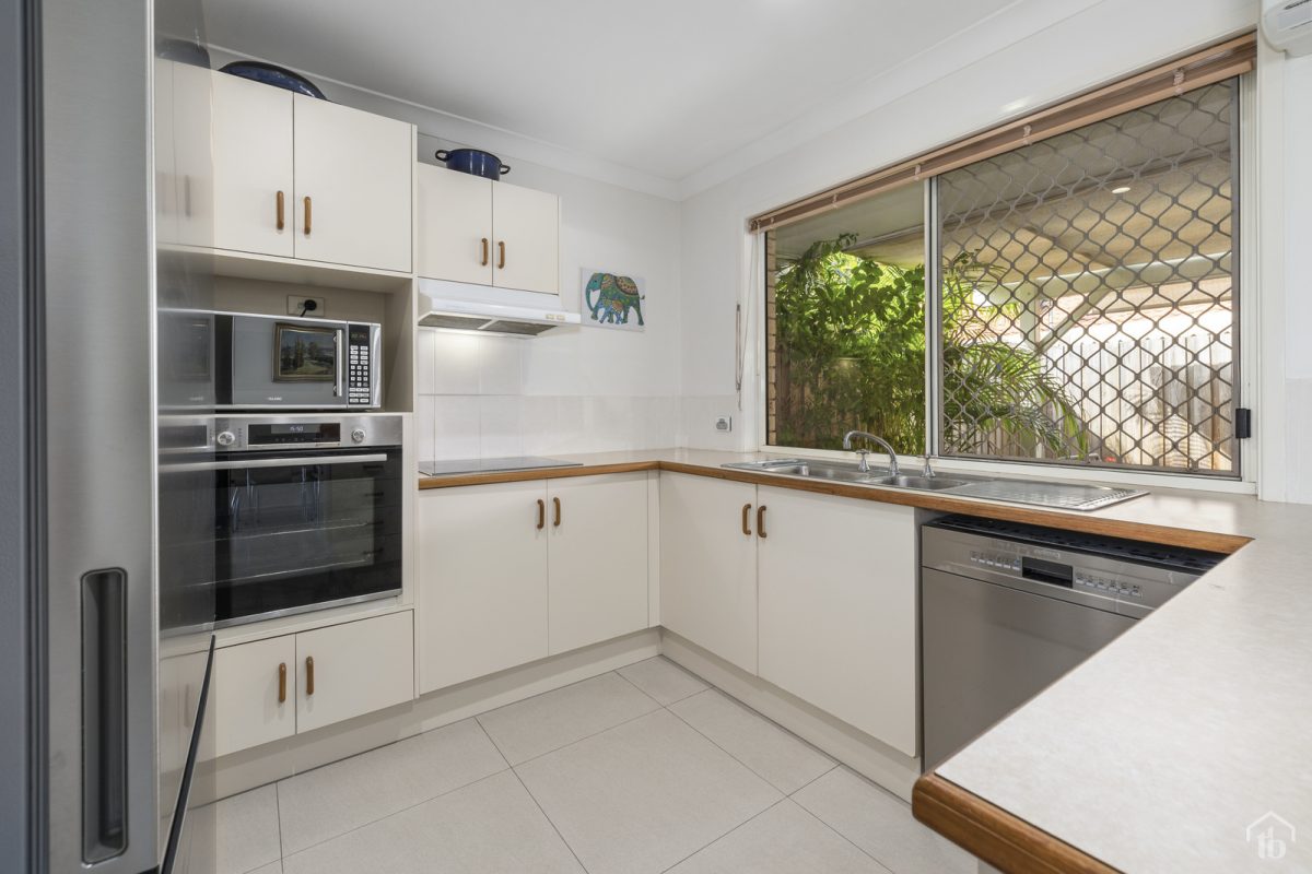 The kitchen provides ample bench space and cupboards with electric cooking, dishwasher and a large window welcoming the natural light from the landscaped rear courtyard.