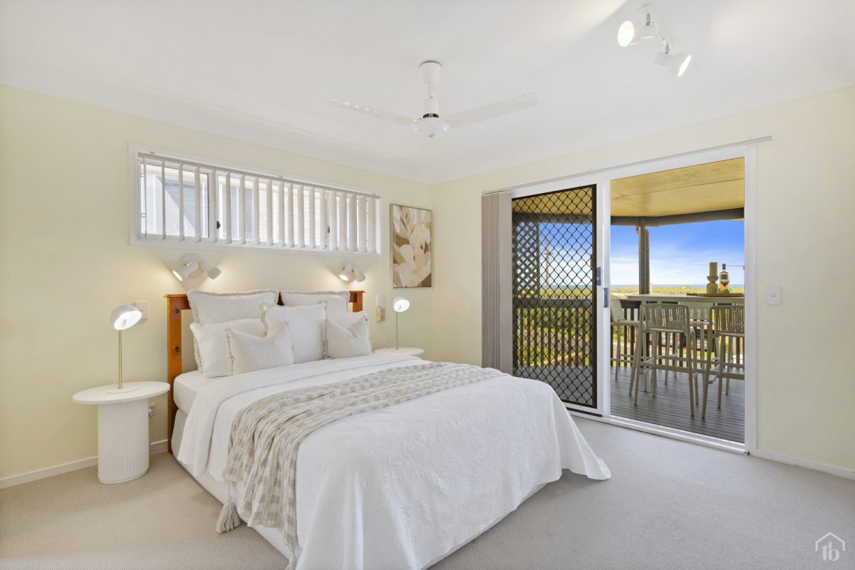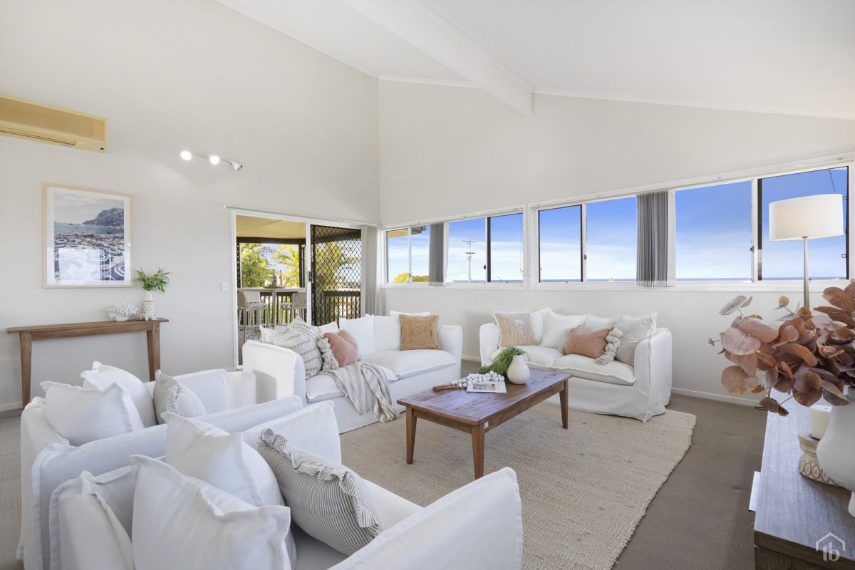 Upstairs, soaring high-pitched ceilings enhance the light-filled living and dining zone, adding architectural character and a wonderful sense of openness. Both front and back balconies, frame the panoramic outlook, creating a relaxed coastal atmosphere throughout home.