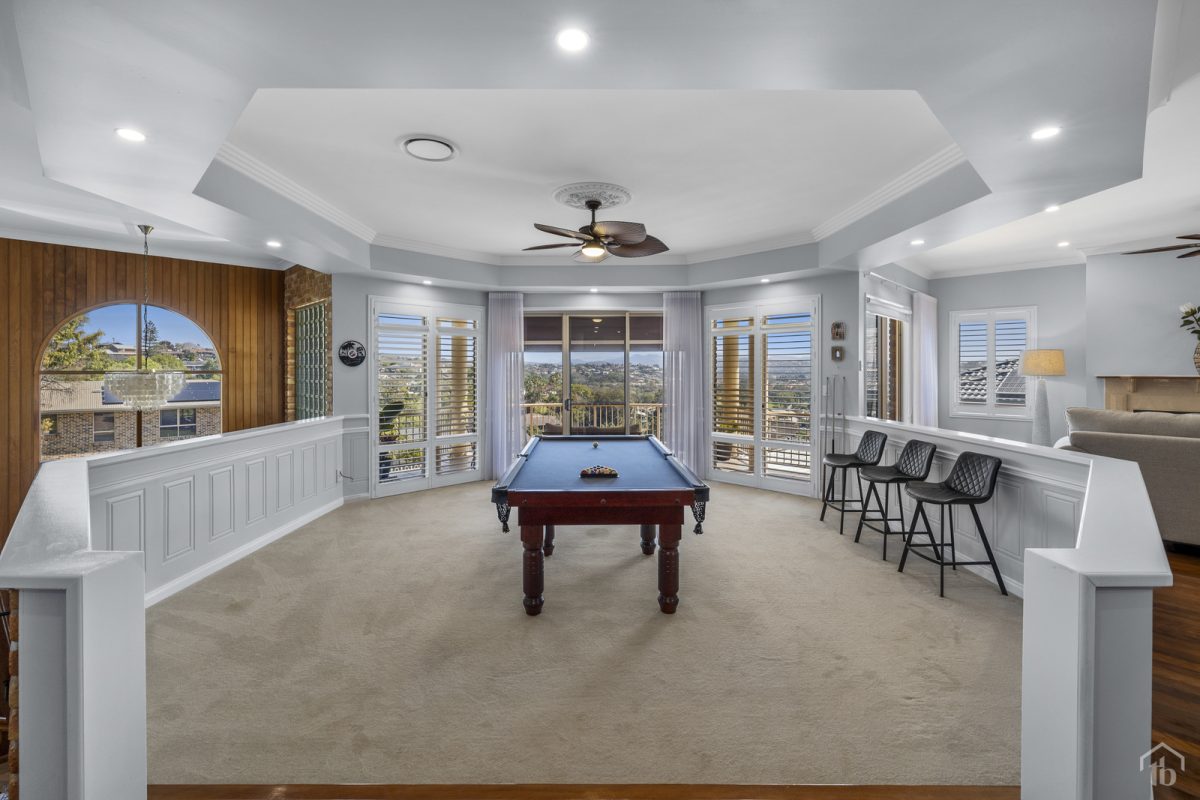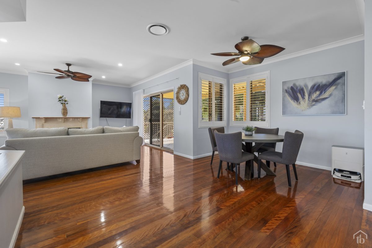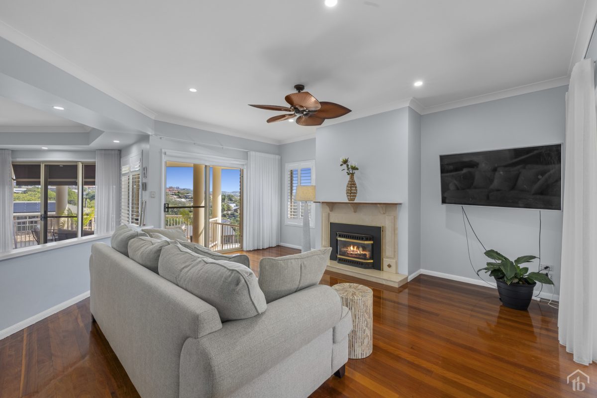 Inside, soaring high ceilings create a light-filled sense of openness. Two generous living areas upstairs provide plenty of room for both relaxation and entertaining, while the undercover veranda is the perfect spot to pause and take in the view. At the rear, a covered patio flows onto a flat, usable yard-ideal for summer barbecues, children’s play, or simply enjoying the peaceful surrounds.