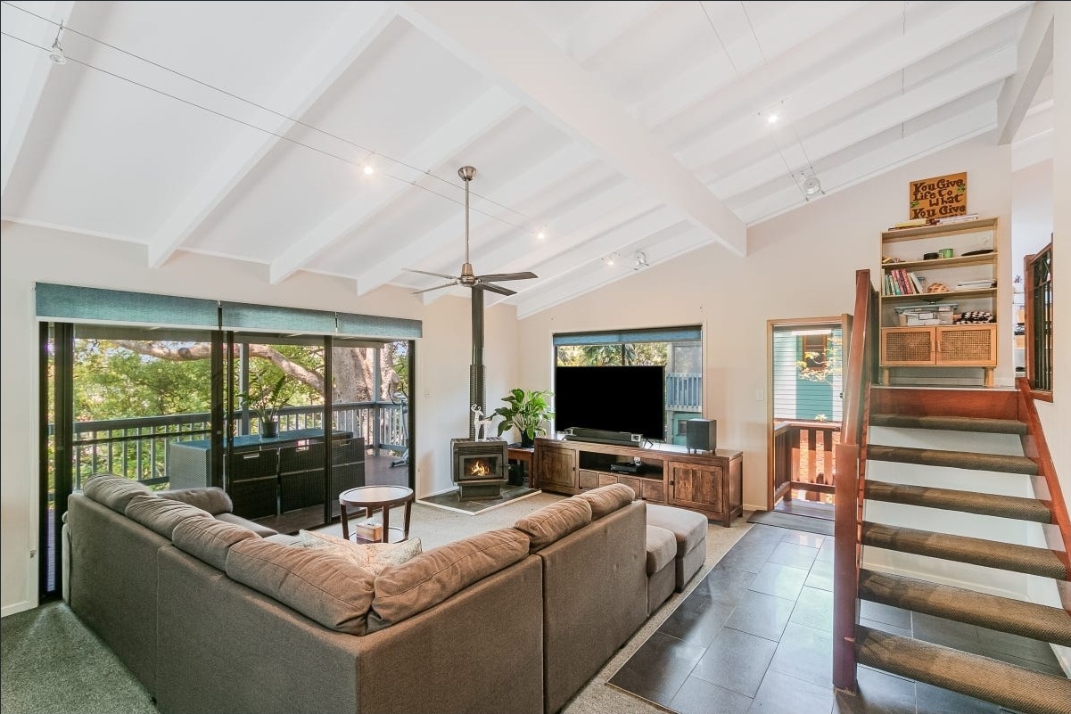 Set in an elevated position to capture cooling breezes and sweeping views, this split-level home welcomes you with warmth, character, and charm. Step inside to a generous living area where a ceiling fan and crackling fireplace invite you to unwind, no matter the season. From here you step straight out to a sprawling front deck – the perfect vantage point to soak in the outlook and enjoy relaxed outdoor living.