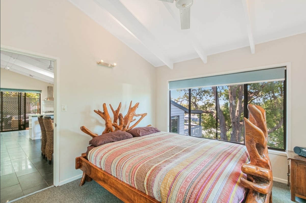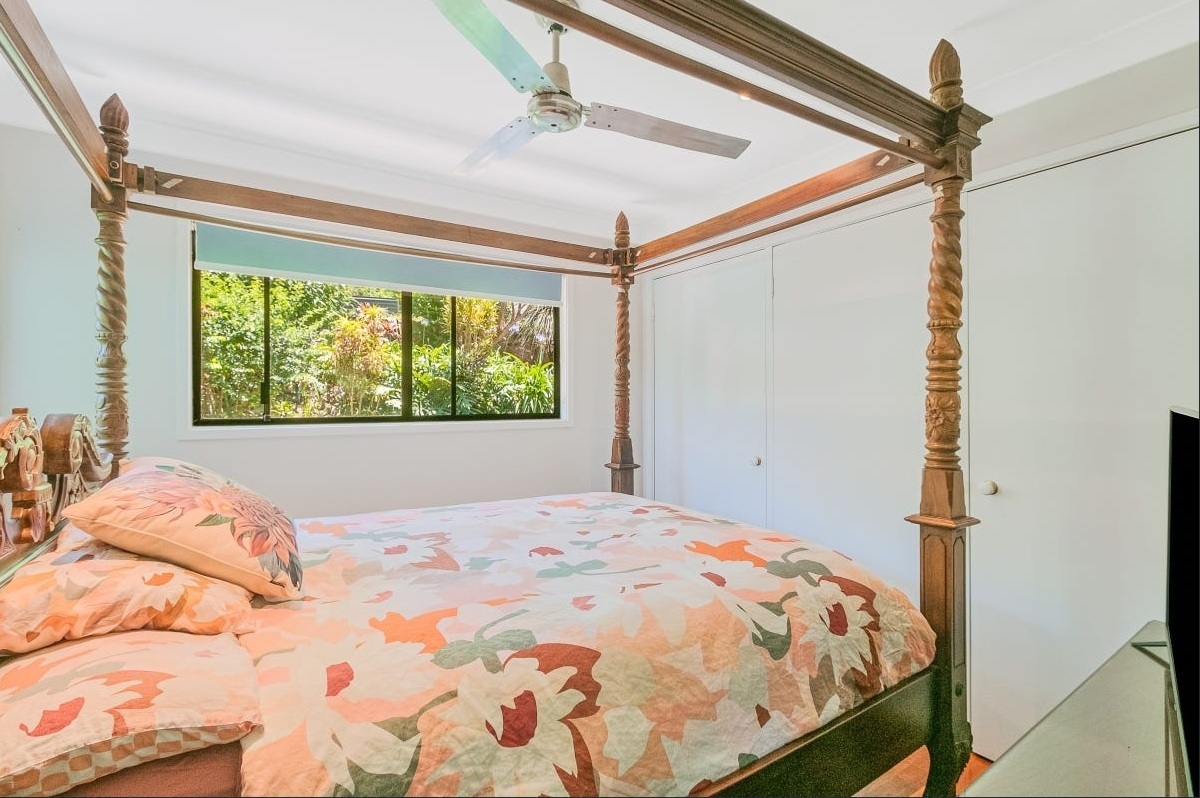 The master bedroom offers a peaceful retreat with air conditioning and a ceiling fan for year-round comfort. Two additional bedrooms provide flexibility – one with both fan and air conditioning, and the other with a fan to catch the natural breezes. The central bathroom is a relaxing haven, complete with a spa tub, while a separate toilet adds convenience for daily living.