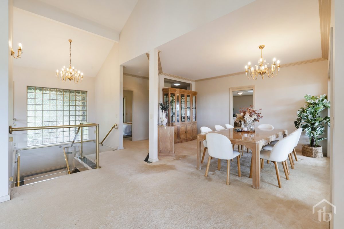 Arriving through the grand double-door entrance, you’re welcomed by an impressive foyer that sets the tone for the space and scale throughout. Upstairs, the home opens into a magnificent formal lounge with a soaring 5.2m raked ceiling – a stunning central living space filled with natural light and designed for both relaxed family living and entertaining. The remainder of the upper level enjoys 3.1m high ceilings, enhancing the sense of openness throughout.