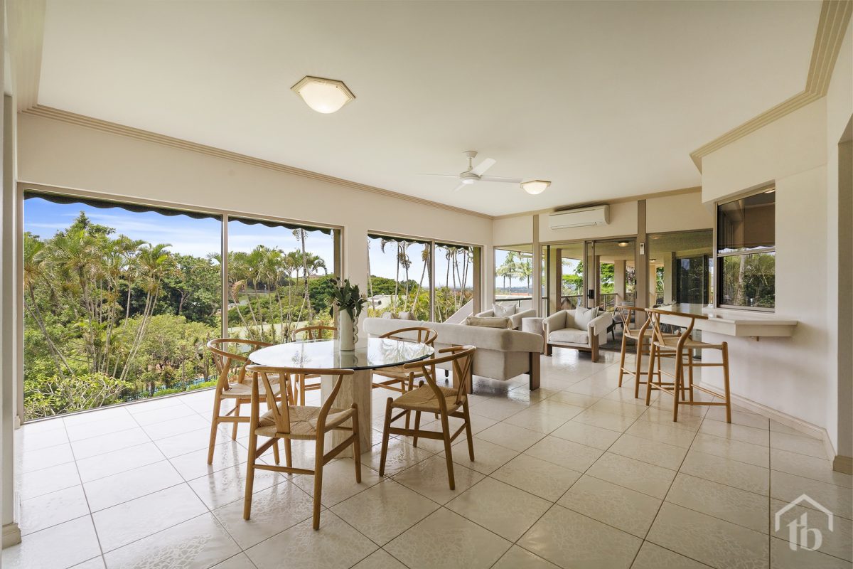 The spacious kitchen connects seamlessly with the living areas and flows through to a covered rear BBQ area, perfect for weekend gatherings or quiet evenings overlooking the lush, established gardens and ocean views beyond.