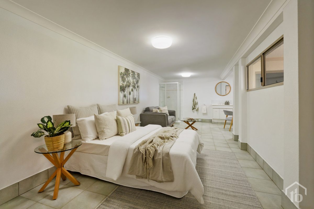 Accommodation is generous and flexible, offering five bedrooms plus a separate downstairs guest quarters complete with its own shower and private external entry – ideal for extended family, teenagers, guests or a work-from-home setup. The master suite is substantial in size and features a walk-in robe and private ensuite, creating a peaceful sanctuary within the home.
