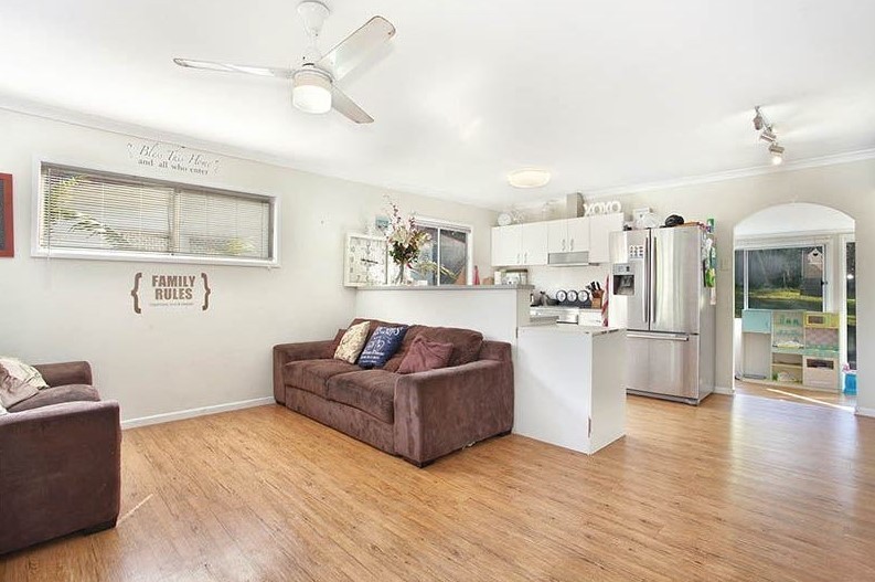 Peaceful family home with open plan natural light living and dining area, kitchen equipped with a dishwasher enlarge pantry.