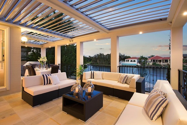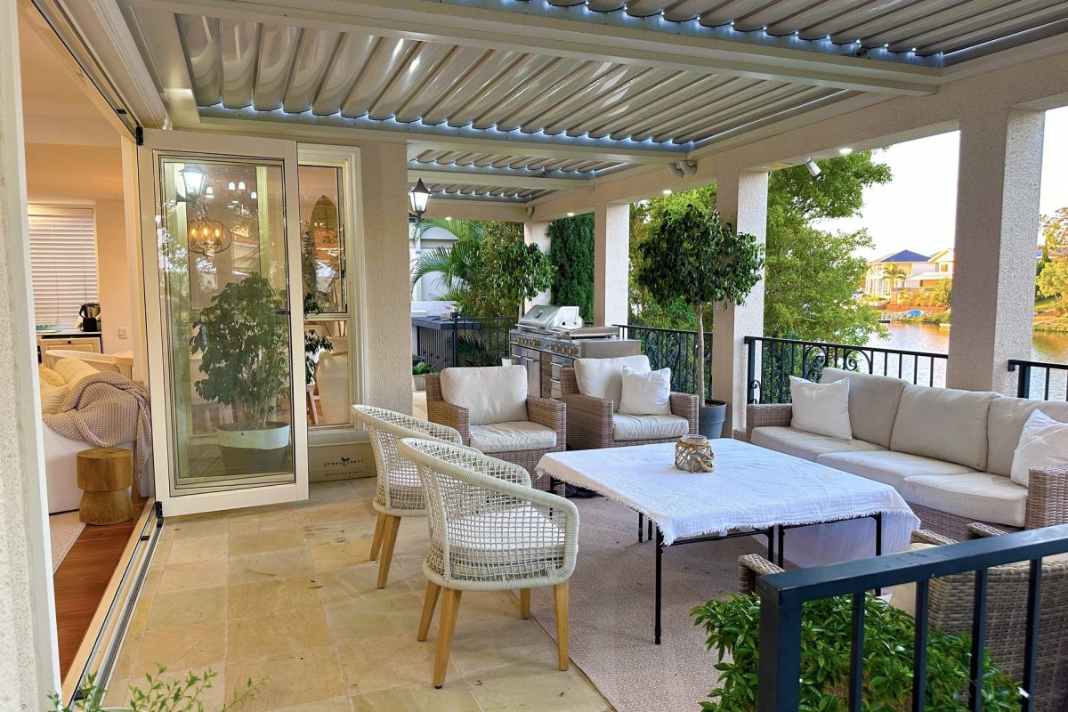 Step outside to your private outdoor oasis, complete with an inviting in-ground pool and expansive balconies that offer stunning water views. The living and dining area seamlessly connects to a balcony with automatic shutters that close at the first hint of rain, ensuring you can enjoy the outdoors no matter the weather.