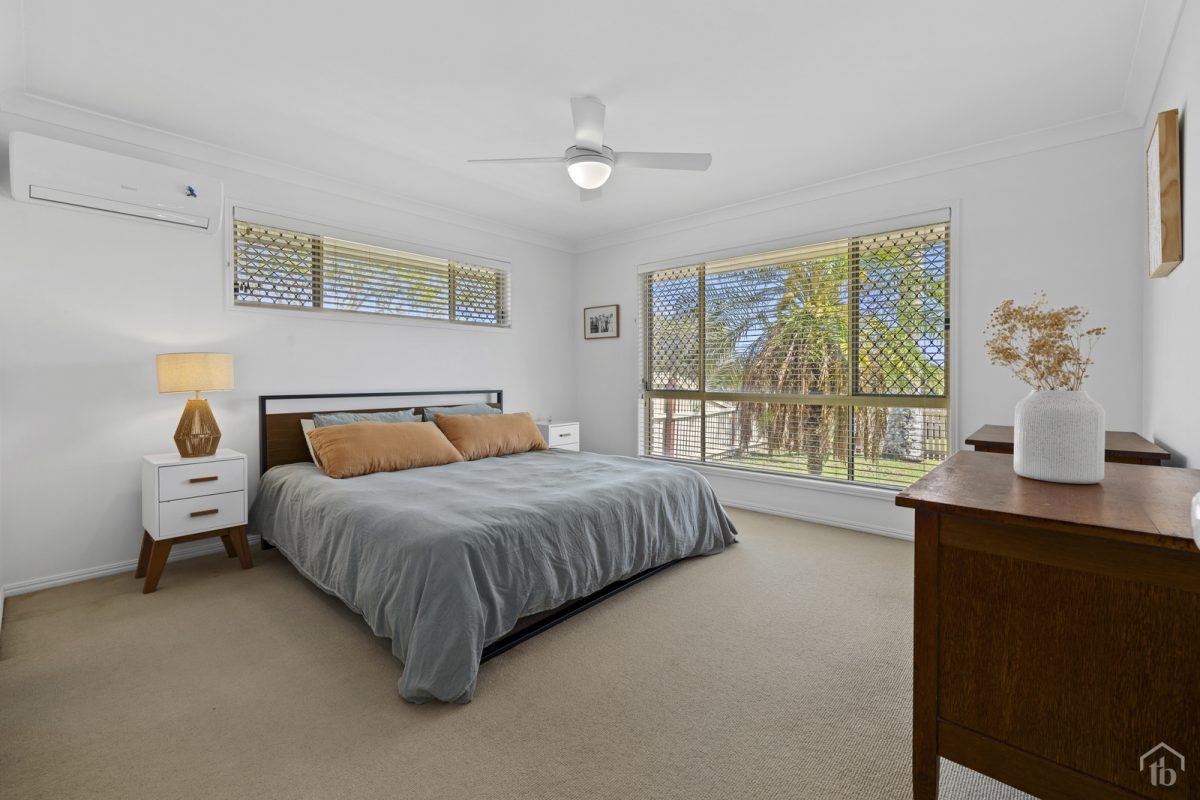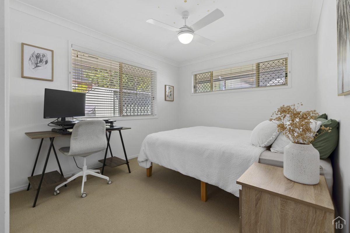 The living area is light-filled and inviting, kept comfortable year-round with air conditioning along with ceiling fans throughout adding to the home’s practical appeal. It’s a space where afternoons drift into evenings, whether you’re hosting friends or enjoying a quiet night in.